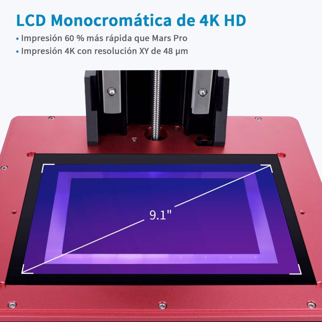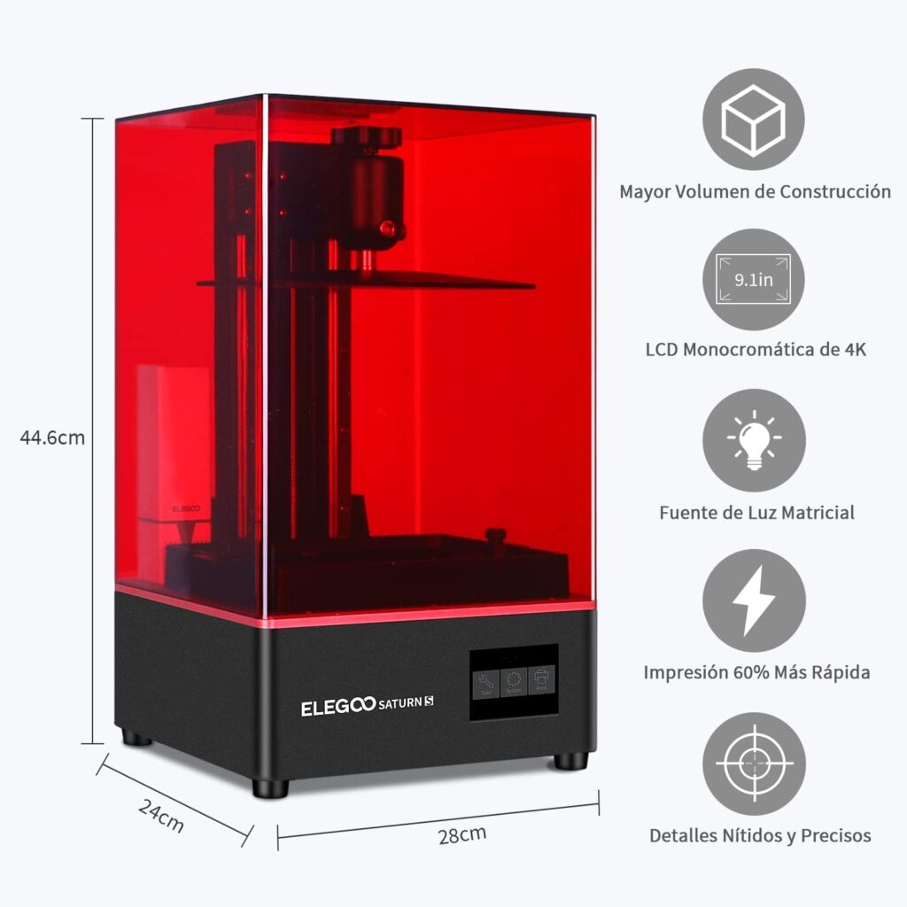 Pantalla LCD de 9,1 Pulgadas y Alta Resolución Saturn S permite imprimir modelos con una precisión XY de 48 µm gracias a su pantalla LCD de 4K y 9,1 pulgadas, lo que se traduce en una velocidad de impresión más rápida de 30-70 mm/h.