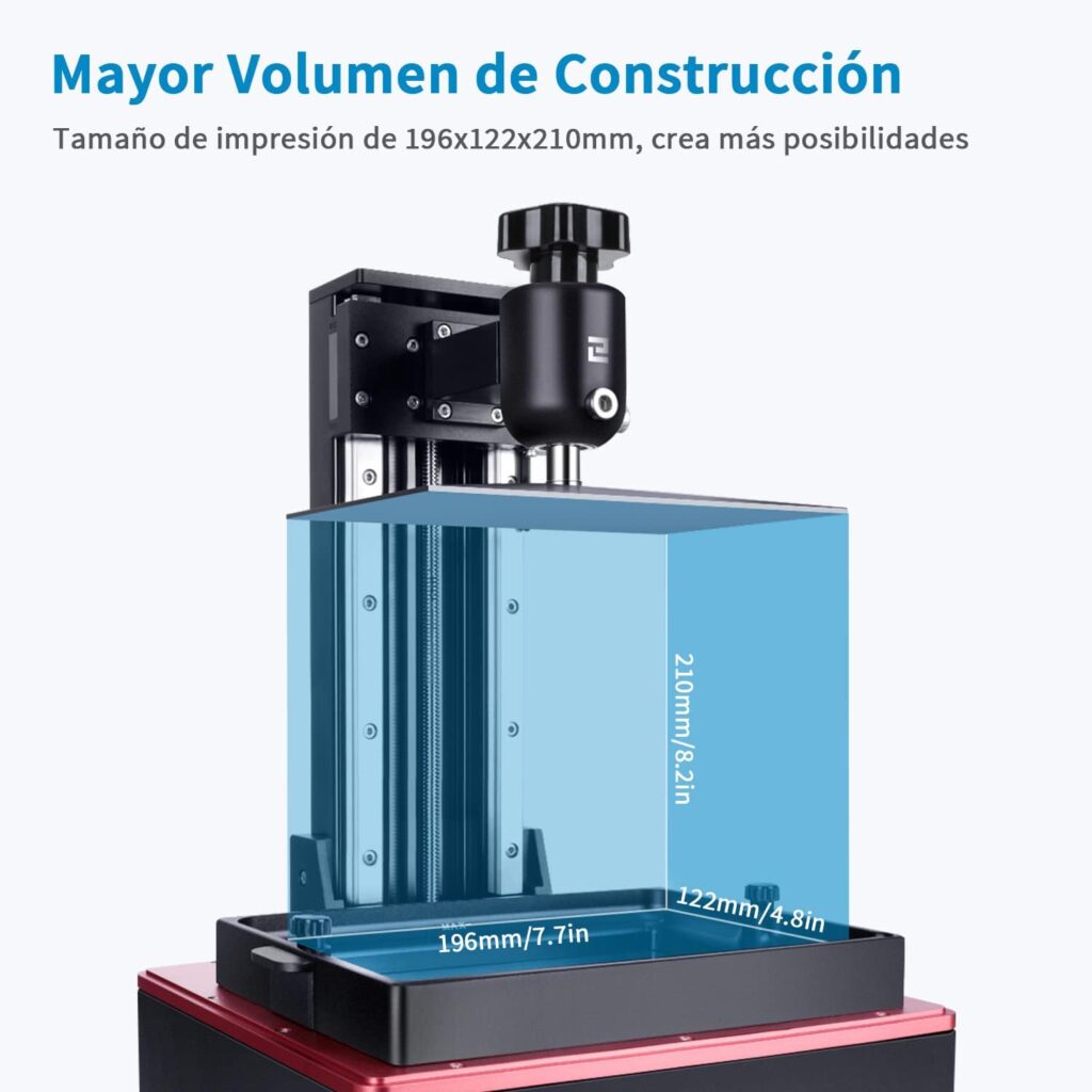 Volumen de Impresión Ampliada Saturn S ofrece un volumen de impresión mayor de 196122210 mm, lo que se traduce en un aumento del 9% en comparación con Saturn.